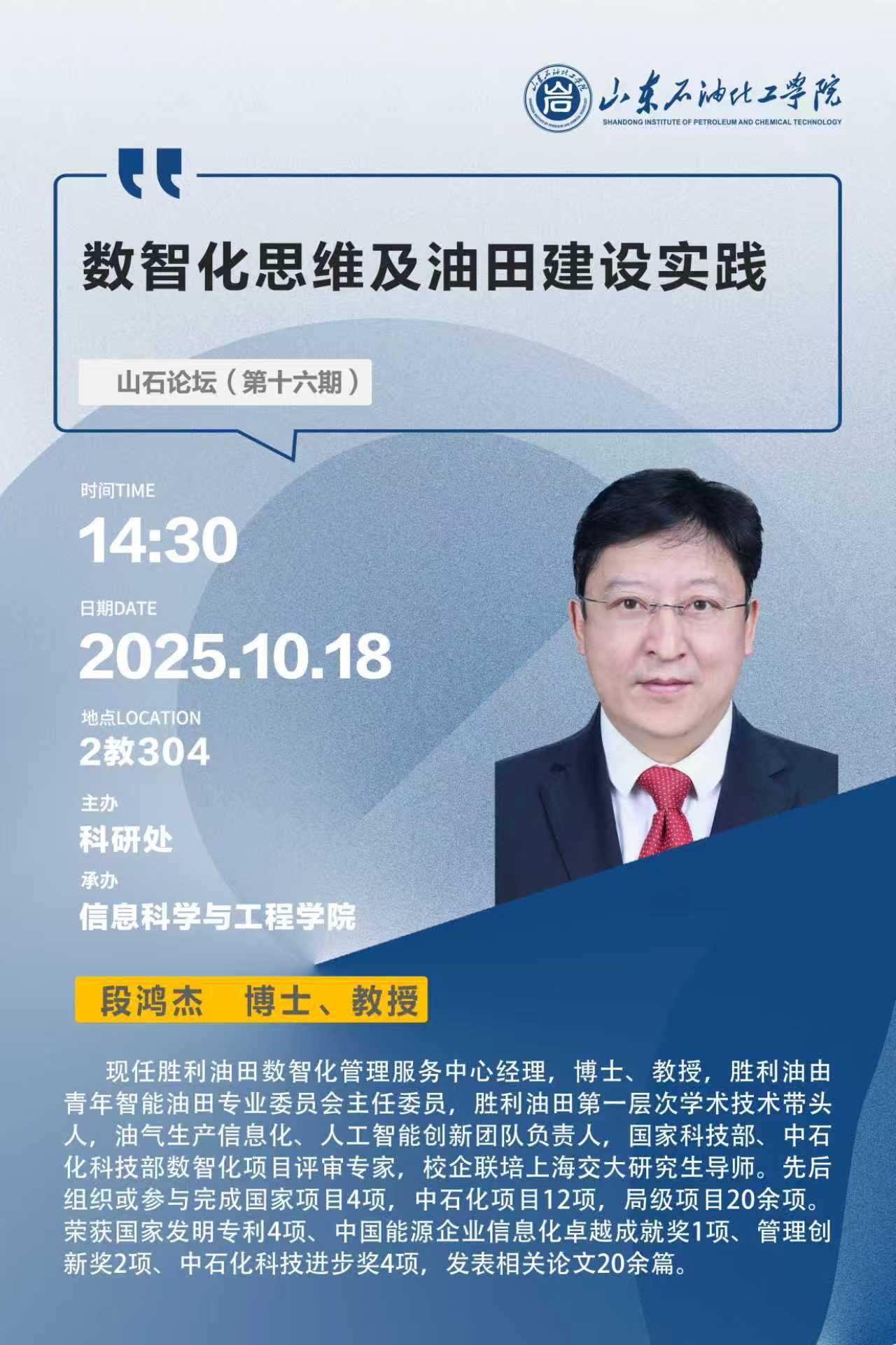 通知:【山石论坛(第16期)】数智化思维及油田建设实践