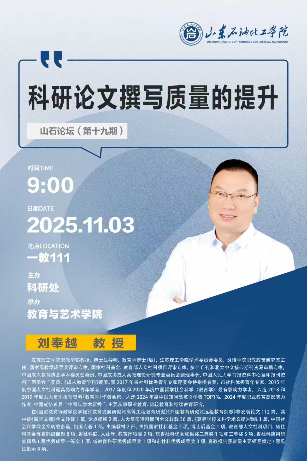 通知:【山石论坛(第19期)】科研论文撰写质量的提升