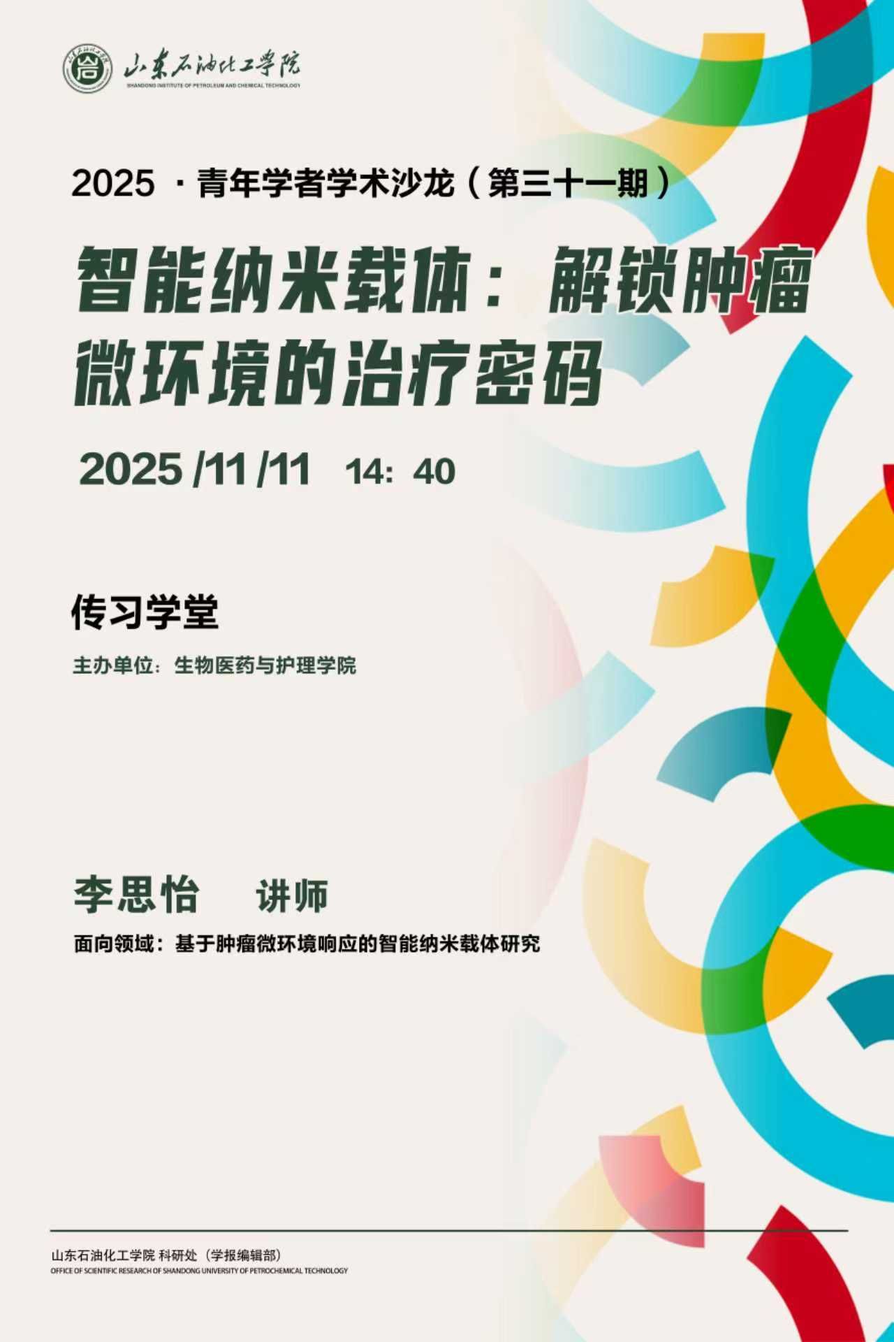 通知:【青年学者学术沙龙(第31期)】智能纳米载体:解锁肿瘤微环境的治疗密码