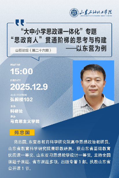 通知:【山石论坛(第26期)】“大中小学思政课一体化”专题“思政育人”贯通阶梯的思考与构建——以东营为例