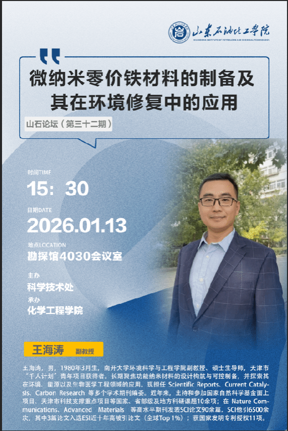 通知:【山石论坛(第32期)】微纳米零价铁材料的制备及其在环境修复中的应用