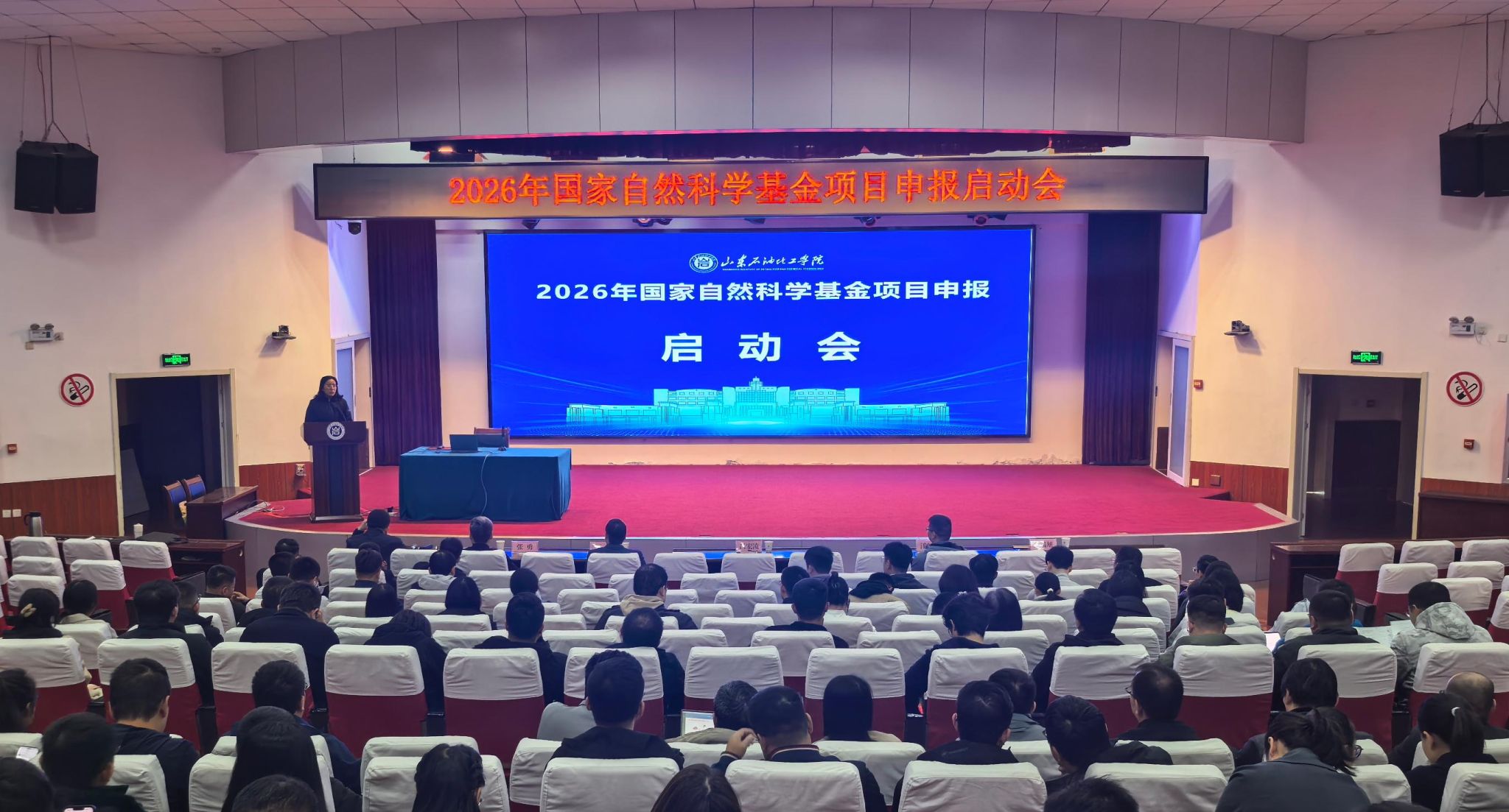 10月21日下午,学校在100号报告厅召开2026年国家自然科学基金项目申报启动会。校党委委员、副校长吕宏凌出席会议并讲话。中国石油大学(华东)科技处副处长张勇、中国石油大学(华东)石油工程学院王森教授、青岛科技大学化学与分子工程学院常务副院长汪恕欣教授、山东石油化工学院智能制造与控制工程学院侯端旭博士等四位专家受邀作专题讲座。